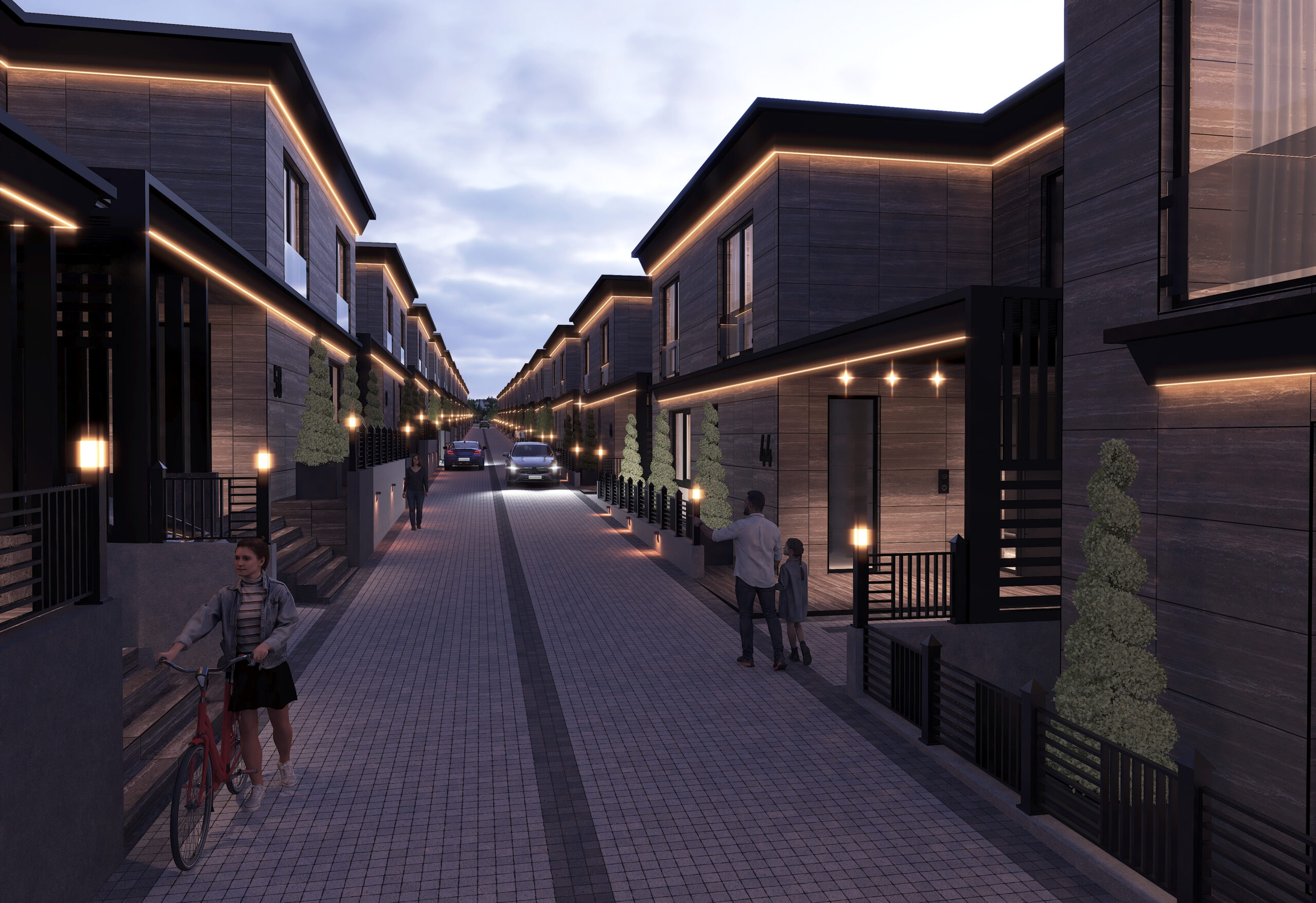 Geniş taş yollar, çevreye duyarlı aydınlatmalar, yürüyüş parkurları ve botanik park alanları; site dış görünümünü yalnızca bir görsel şölen haline getirmekle kalmıyor, aynı zamanda günlük yaşama doğallık ve konfor katıyor.