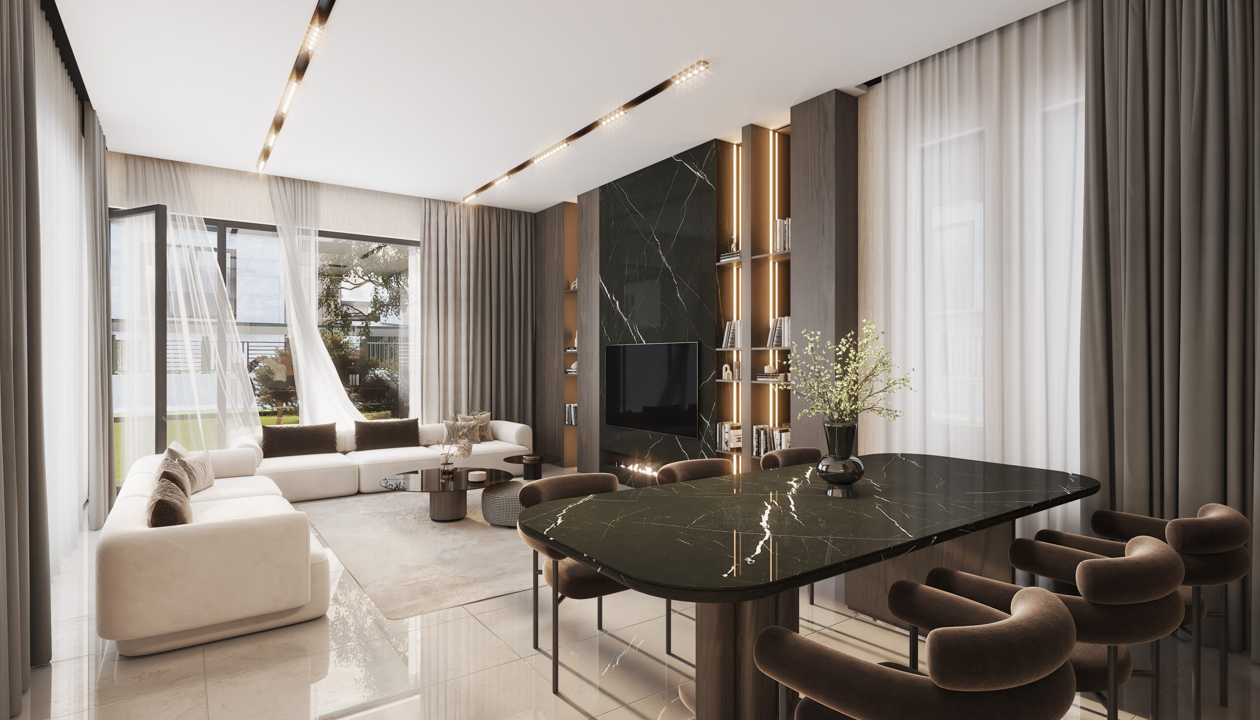 Ganadores View Seyirtepe Evleri’nin kapısından içeri adım attığınız an, sizi karşılayan ilk şey huzur… Geniş ve ferah salonunda gün ışığı adeta evinize misafir olurken; yüksek tavanlar, modern çizgilerle birleşerek her anı daha da özel kılar.